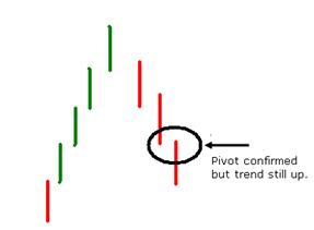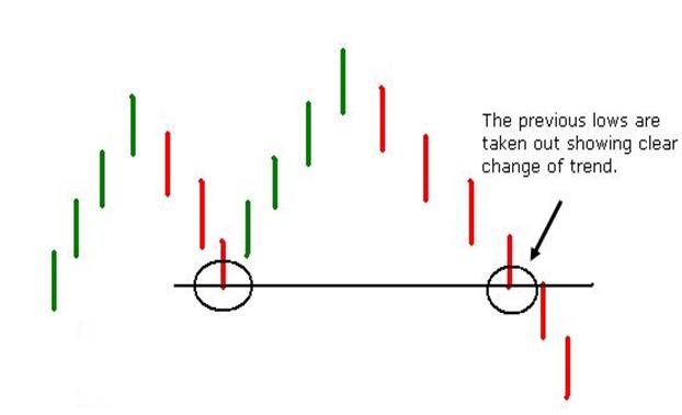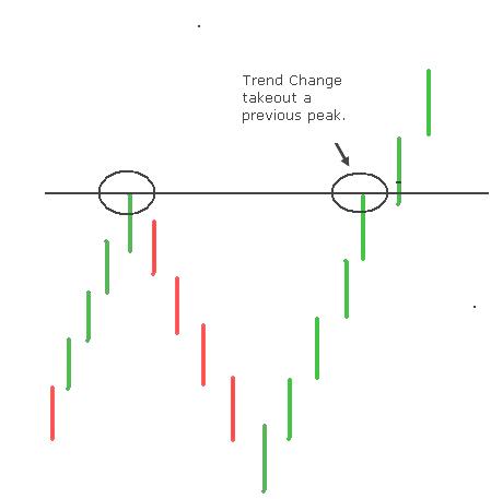 Trend change is when the previous peak is taken out. As shown in the picture below.
